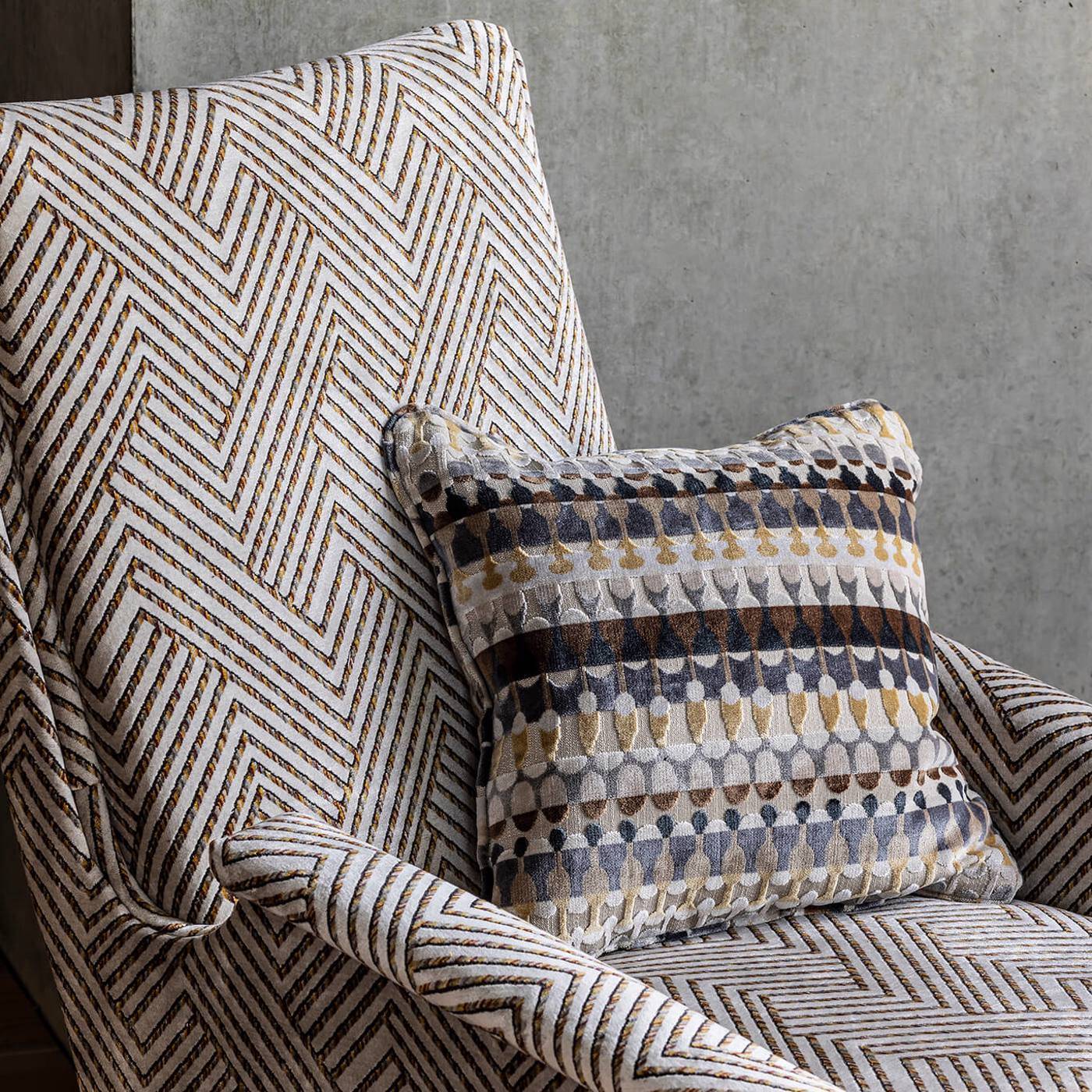 Uderzający, tkany aksamit w zygzaki, Grassetto to nowoczesny projekt, który fantastycznie wygląda na meblach.